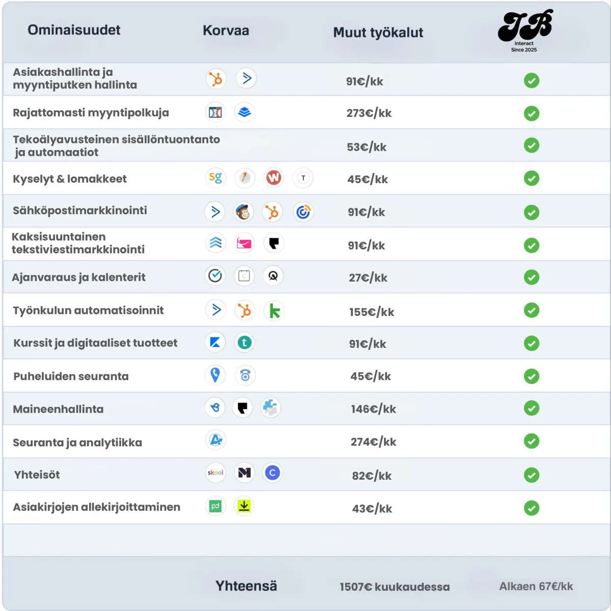 JB Interact Hub kokoaa markkinoinnin, myynnin ja asiakashallinnan työkalut yhteen helppokäyttöiseen alustaan.